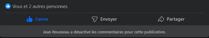 Je me suis doutée que cela était une arnaque car vu le prix 150 €et surtout sous l’annonce il y avait ceci Jean Rousseau à désactivé les commentaires pour cette publication.