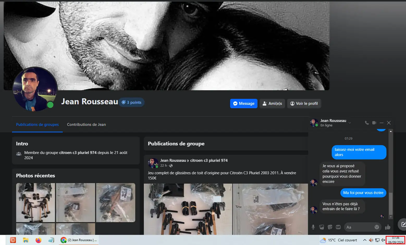 Attention un arnaqueur sur Facebook