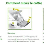 On accède à la commande d’ouverture du volet par la trappe mobile intégrée au capot de coffre.
