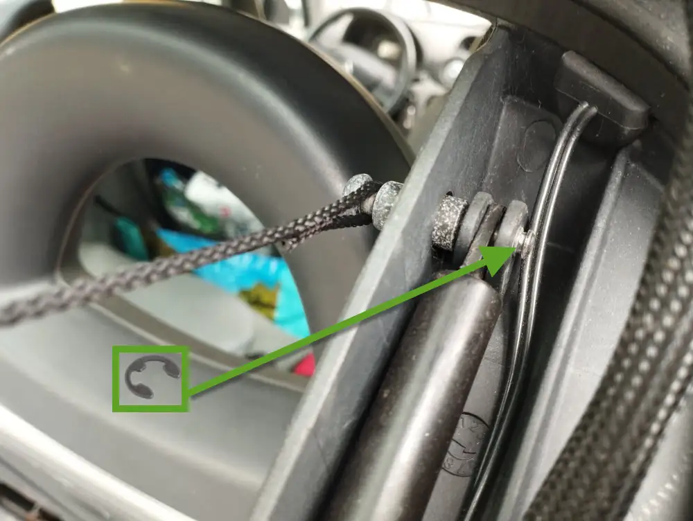 Une fois cette première étape réalisée, vous pouvez déposer les vérins usagés. Le système d’accroche est généralement très simple à retirer, il ne s’agit d’un clips métalliques.