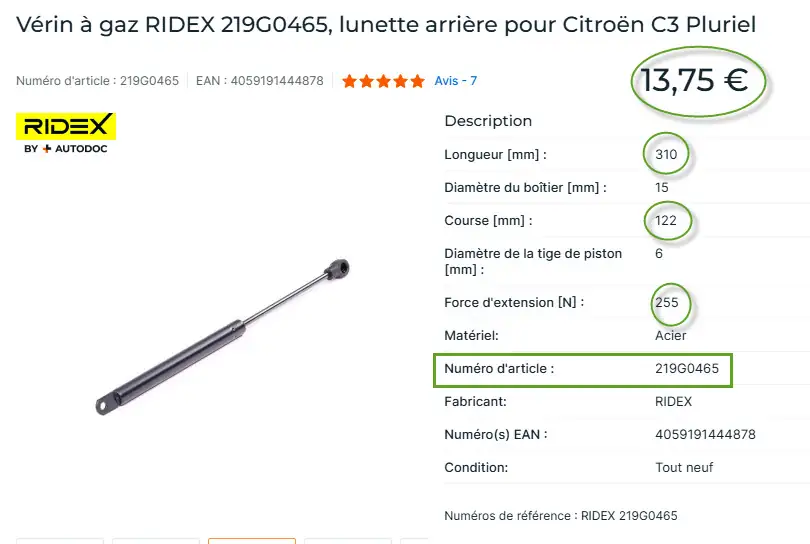 Vous devrez évidemment vous munir d’un jeu de vérins neufs, assurez-vous de choisir un modèle compatible avec votre C3 Pluriel.