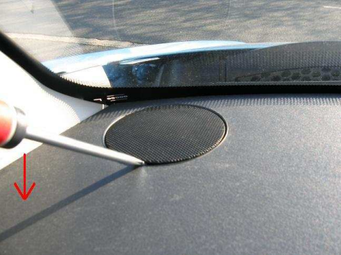 Déclipser la grille de haut-parleur comme indiqué sur la photo. |