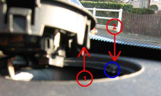 Séparer la grille du tweeter en tournant celui-ci dans le sens indiqué sur la photo (1) afin qu’il se retrouve comme sur la photo (2).