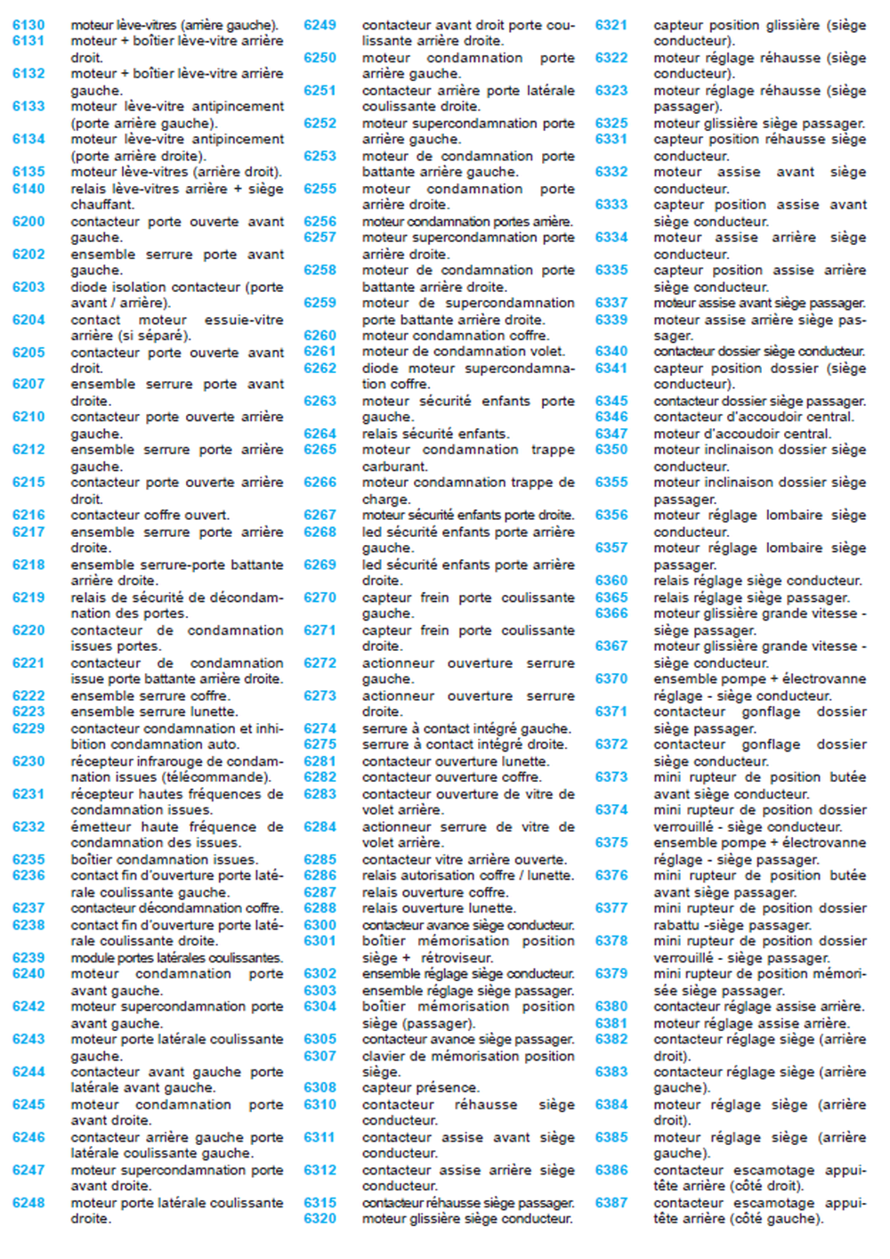 Liste complet des codes et références des équipements électrique C3 Pluriel de 6130 à 6387 Voici la codification des abréviations La suite pour la page 7 sur 11 Please leave this field empty Pour aller plus loin, Inscrivez-vous pour recevoir les nouveaux articles dans votre boite de réception. Je hais les spams votre adresse email ne sera jamais cédée ni revendue. En vous inscrivant ici, vous recevrez des articles, vidéos, offres commerciales et autres conseils pour vous aider pour votre C3 Pluriel. Vous pouvez vous désabonner à tout instant. politique de confidentialité Vérifiez votre boite de réception ou votre répertoire d’indésirables pour confirmer votre abonnement. Please leave this field empty Oh bonjour 👋 Ravi de vous rencontrer. Inscrivez-vous pour recevoir les nouveaux articles dans votre boite de réception. Sélectionner une ou plusieurs listes : Liste de diffusion de newsletter Je hais les spams votre adresse email ne sera jamais cédée ni revendue. En vous inscrivant ici, vous recevrez des articles, vidéos, offres commerciales et autres conseils pour vous aider pour votre C3 Pluriel. Vous pouvez vous désabonner à tout instant. politique de confidentialité Vérifiez votre boite de réception ou votre répertoire d’indésirables pour confirmer votre abonnement. Entrées similaires: Liste complet des codes et références page 2 Liste complet des codes et références page 3 Liste complet des codes et références page 4 Liste complet des codes et références page 5 Submit a Comment Cancel replyYour email address will not be published. Required fields are marked *Comment * Name * Email * Website Save my name, email, and website in this browser for the next time I comment. Oui, ajoutez-moi à votre liste de diffusion.