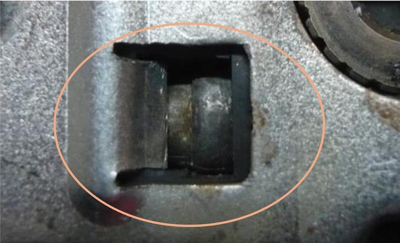 Pièce très fragilisée sur l’emplacement ( rouge )