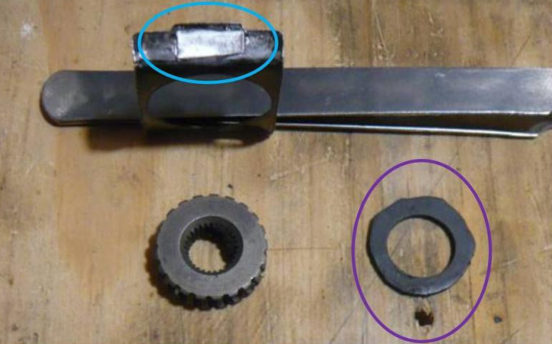 Point 2: J’ai découpé dans du caoutchouc dur une rondelle à placer sous le pignon (violet).