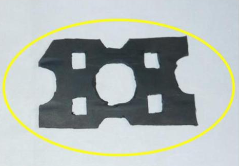 Point 3: Ensuite, j’ai découpé une pièce en caoutchouc (jaune) à placer sous la platine.