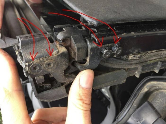 déposer les 4 vis de la charnière et la déposer (il faut du Torx et de l’Allen selon les vis)