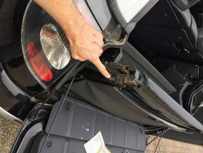 Après démontage du vérin et de quelques caches plastique, j’ai pu refermer la lunette et verrouiller.