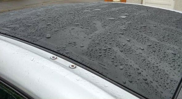 Attendre le séchage complet, la capote n’étant surement plus étanche, cela peut-être long (3h). Il est sans doute nécessaire de teindre le lendemain