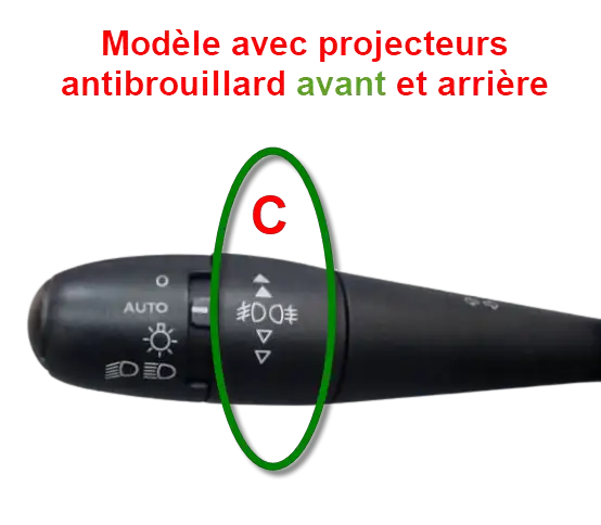 PROJECTEURS ANTIBROUILLARD 4 (selon équipement) Si le véhicule est équipé de cet équipement, la bague centrale du levier commande conjointement