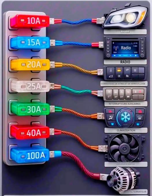 En fondant lorsque le courant dépasse leur valeur nominale, coupant ainsi l’alimentation pour éviter d’endommager des composants tels que les lumières, la radio, la climatisation, le ventilateur et l’alternateur.