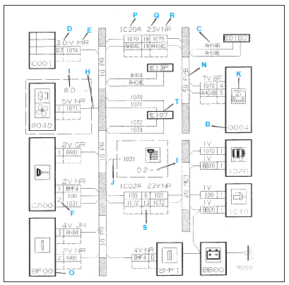 O : représentation d’une boîte à fusibles. P : numéro de l’interconnexion.