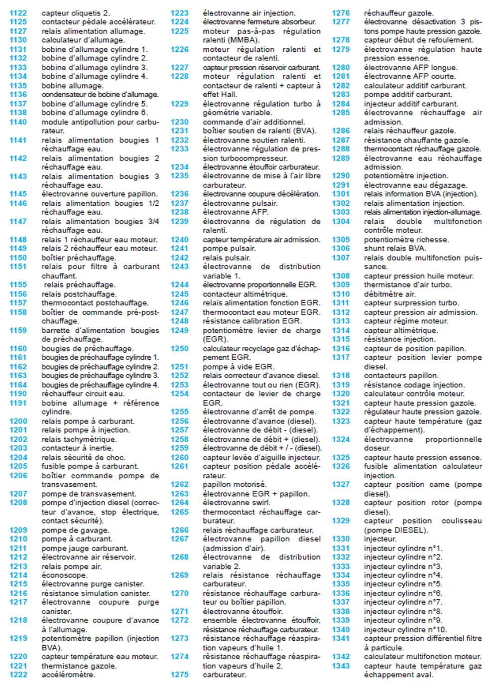 Liste complet des codes et références des équipements électrique C3 Pluriel de 1122 à 1343 Voici la codification des abréviations La suite pour la page 3 sur 11 Veuillez laisser ce champ vide Pour aller plus loin, Inscrivez-vous pour recevoir les nouveaux articles dans votre boite de réception. Je hais les spams votre adresse email ne sera jamais cédée ni revendue. En vous inscrivant ici, vous recevrez des articles, vidéos, offres commerciales et autres conseils pour vous aider pour votre C3 Pluriel. Vous pouvez vous désabonner à tout instant. politique de confidentialité Vérifiez votre boite de réception ou votre répertoire d’indésirables pour confirmer votre abonnement. Veuillez laisser ce champ vide Oh bonjour 👋 Ravi de vous rencontrer. Inscrivez-vous pour recevoir les nouveaux articles dans votre boite de réception. Sélectionner une ou plusieurs listes : Liste de diffusion de newsletter Je hais les spams votre adresse email ne sera jamais cédée ni revendue. En vous inscrivant ici, vous recevrez des articles, vidéos, offres commerciales et autres conseils pour vous aider pour votre C3 Pluriel. Vous pouvez vous désabonner à tout instant. politique de confidentialité Vérifiez votre boite de réception ou votre répertoire d’indésirables pour confirmer votre abonnement. Entrées similaires: Lecture des schémas de principe de câblage et d’implantation Liste complet des codes et références page 1 Liste complet des codes et références page 3 Liste complet des codes et références page 4 Poster le commentaire Annuler la réponseVotre adresse e-mail ne sera pas publiée. Les champs obligatoires sont indiqués avec *Commentaire * Nom * E-mail * Site web Enregistrer mon nom, mon e-mail et mon site dans le navigateur pour mon prochain commentaire. Oui, ajoutez-moi à votre liste de diffusion.