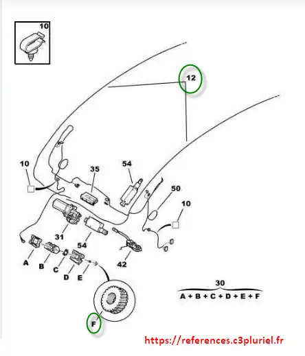 2 Câbles et l’engrenage de toit ouvrant C3 Pluriel