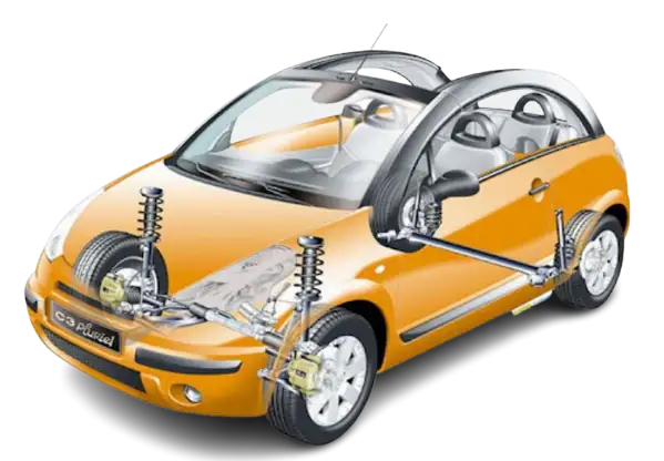 Les essieux, roues, pneus et suspension