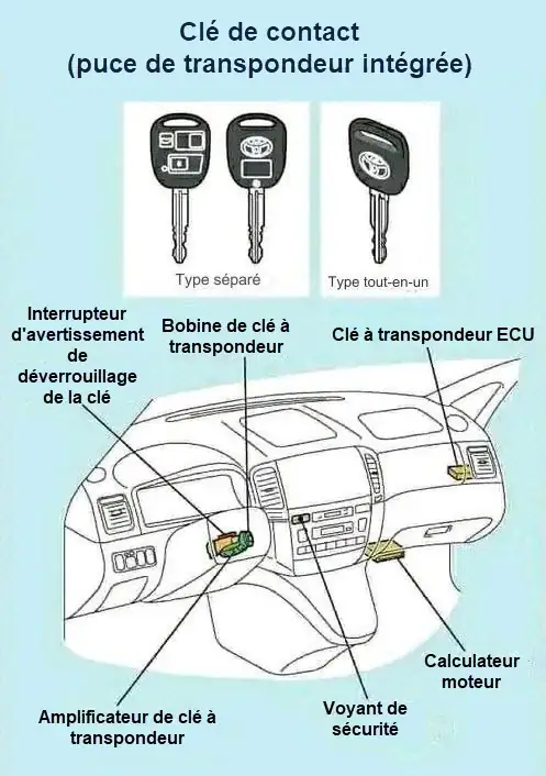Le système vérifie le code unique du transpondeur pour démarrer le moteur, empêchant les tentatives de vol.