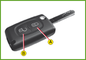 ![]() | Réinitialisation de la télécommande Après un changement de pile, il peut être nécessaire de réinitialiser la télécommande. Pour cela, mettez le contact et actionnez immédiatement la commande A de votre télécommande jusqu’au déclenchement de l’action demandée. Cette manœuvre peut durer une dizaine de secondes. Nota: Notez soigneusement les numéros des clés et de la télécommande sur la carte ASSISTANCE. Conservez-la en lieu sûr. Ne jetez pas les piles usagées. Remettez-les au réseau CITROËN ou aux points de collecte agréés (magasins de photos, etc.). |